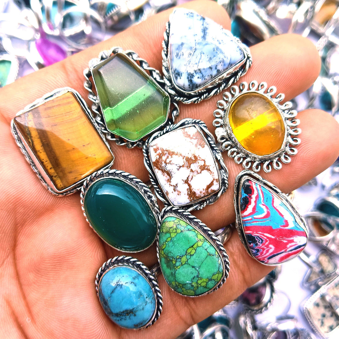 Buy Tiger Eye & Mix Gemstone 925 Sterling Silver Plated 500pcs Rings Lot Lovely Jewelry