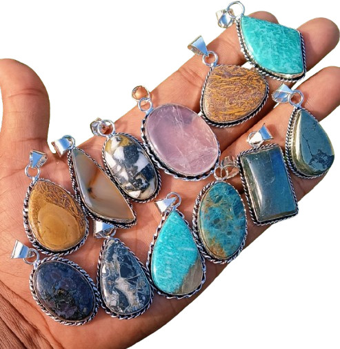 925 Sterling Silver Plated Glowing Amazonite & Mix Gemstone 500pcs Pendant Lot Festival Jewelry